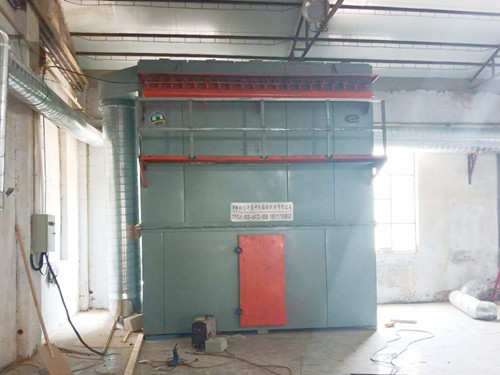 1、含有木屑顆粒的氣流經過風機輸送至布袋過濾器的導流倉中,氣流在導流板的作用下流速降低,較重的木屑顆粒在重力的作用下落入灰倉里,其它較輕細的粉塵隨氣流向上吸附在濾袋的外表面上,經過布袋的過濾后,干凈的氣體進入排風室中并排到外面。